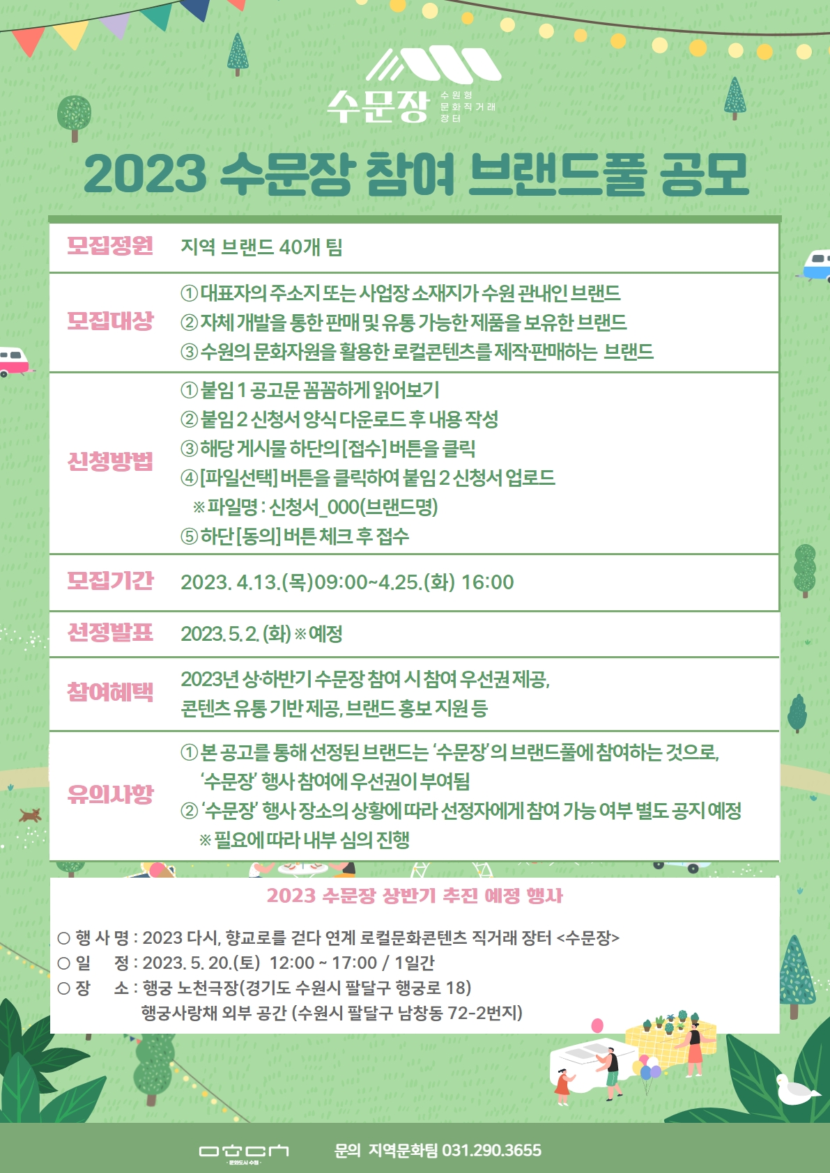 2023 로컬문화콘텐츠 직거래 장터 <수문장> 참여 브랜드풀 공모