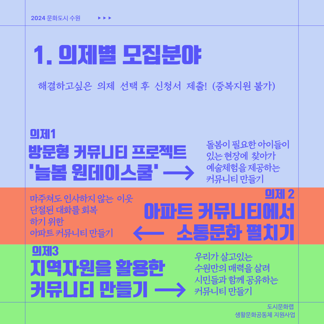 | 제목 | 2024 도시문화랩 생활문화공동체 지원사업 참여자 모집 공고 | ||