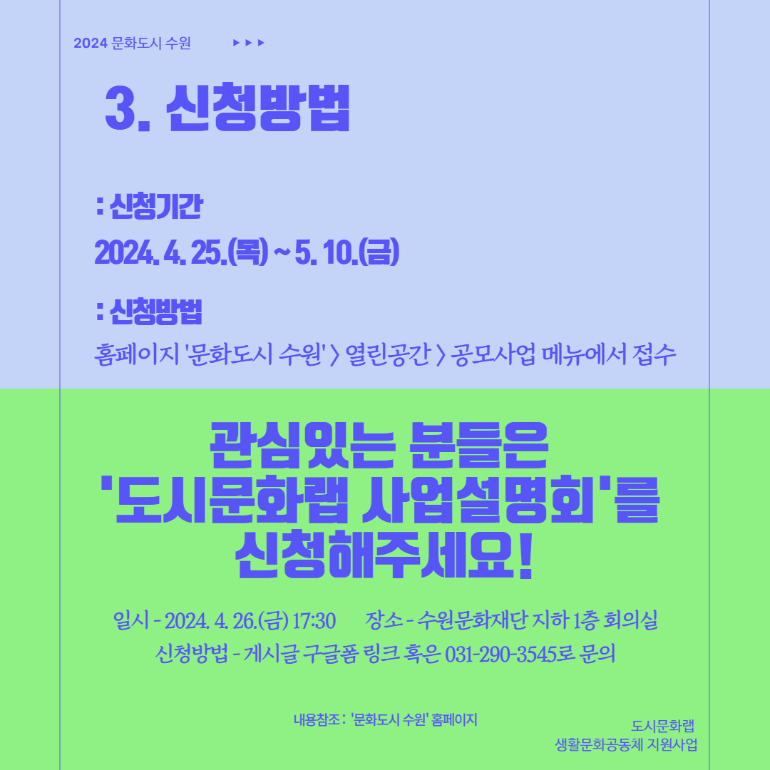 ○ (재)수원문화재단 문화도시센터 시민문화팀 031-290-3545